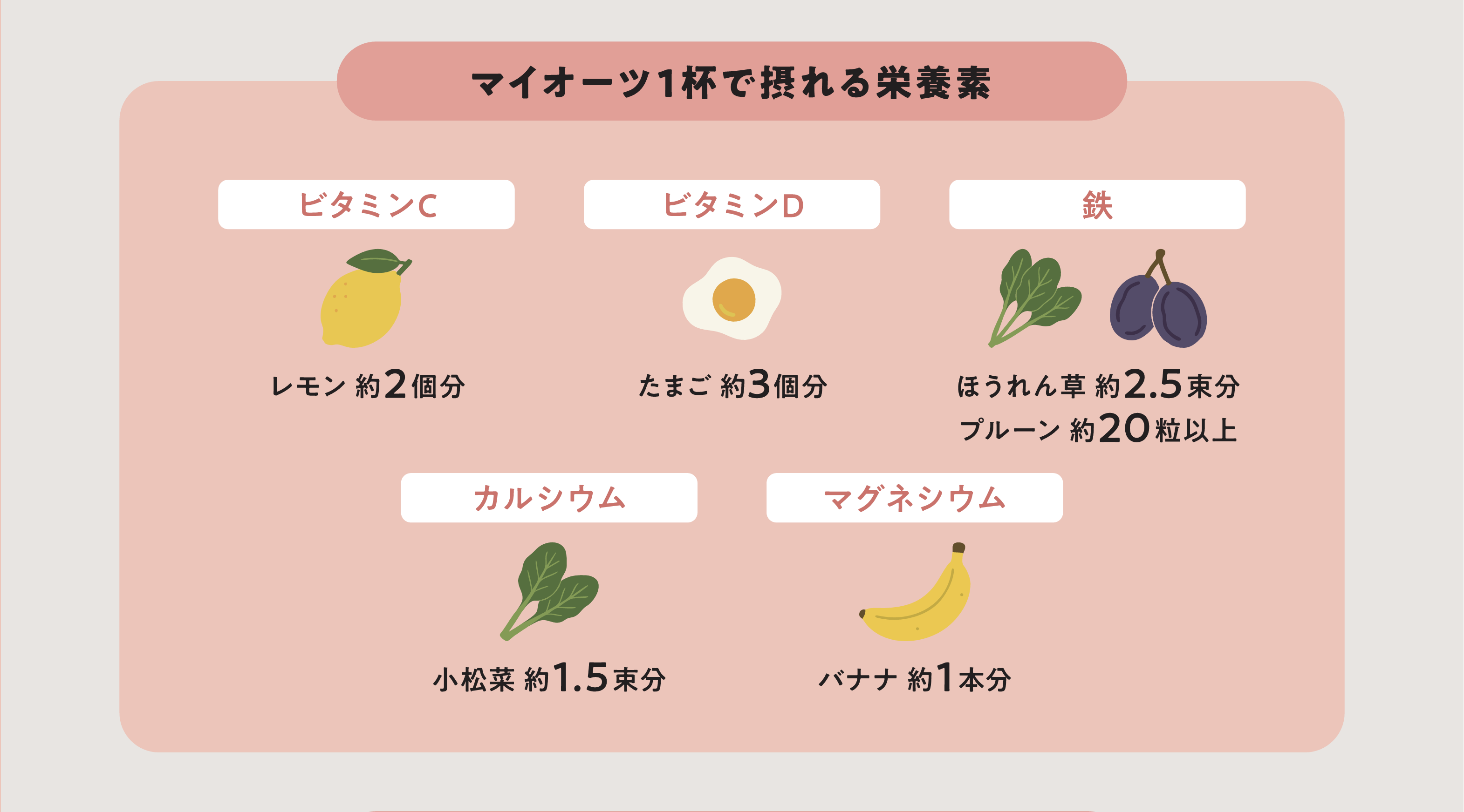 ・鉄(ほうれん草約2.5束分、プルーン20粒以上)